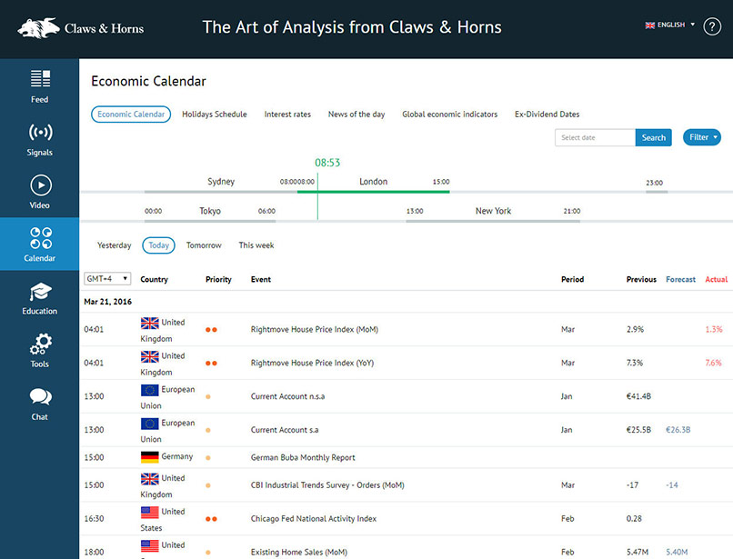 The tool provides a whole range of services including the calendar of macroeconomic events and statistics which allows traders to monitor the key indicators of the global economy and build their trading strategy based on fundamental trends. Additionally, with the economic calendar you significantly reduce costs without compromising the quality of customer service.